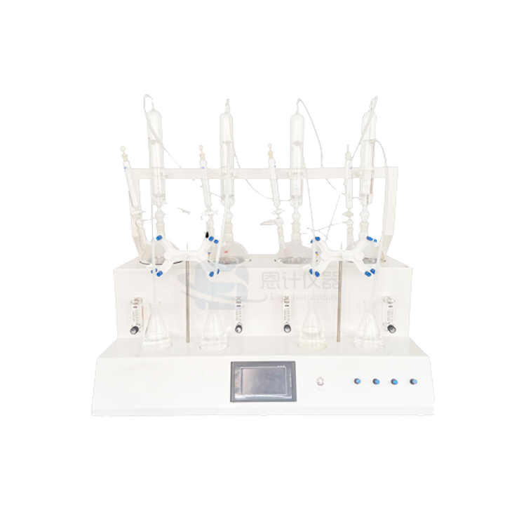 產品介紹隨著GB5009.34-2022《食品中二氧化硫的測定》新國標頒布,食品中的二氧化硫和《中國藥典》中的中藥材二氧化硫測定檢測方法已大致相同,恩計在嚴格遵循國標要求的基礎上,整合加熱,蒸餾,氮吹,定時以及滴定等功能為一體,可同時提供3-5個樣品(空白樣,平行樣)的處理,從而極大的提高了檢測數據的精度和減少了工作時